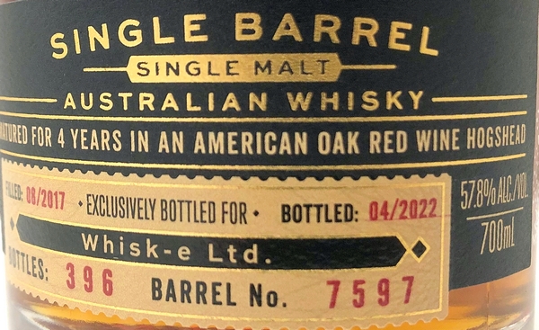 スターワード2017 ヘビーチャード レッドワインカスクはファーストフィルのバロッサバレーの赤ワインで熟成させた後、ヘビーチャ―を施したセカンドフィルの赤ワイン樽で2019年から追熟させた4年熟成で、シングルカスクをカスクストレングスでボトリング。