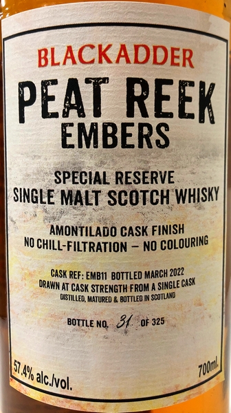 RAW CASK PEAT REEK EMBERS AMONTILLADOCASK FINISH Cask Ref: EMB11 57.4%
