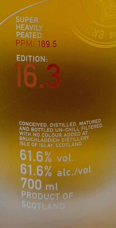 生産地 スコットランド 生産地詳細 アイラ島 ヴィンテージ NV 種類 アイラモルト タイプ バーボン樽 ソーテルヌワイン樽 ペドロ・ヒメネスシェリー樽 フェノール値189.5ppm