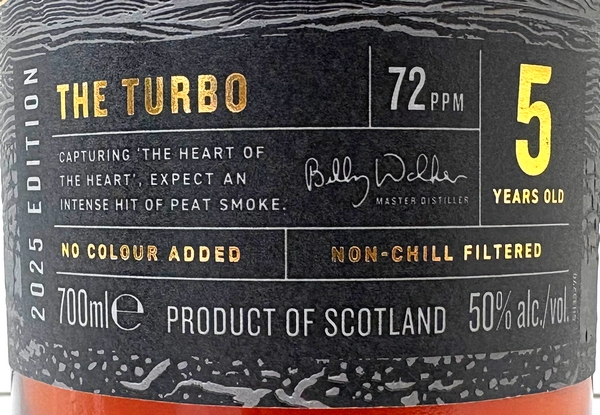 2025エディションは、アメリカンヴァージンオークカスク5樽、オロロソシェリーホグスヘッド4樽のヴァッティングで、スピリッツのフェノール値は72ppmです。