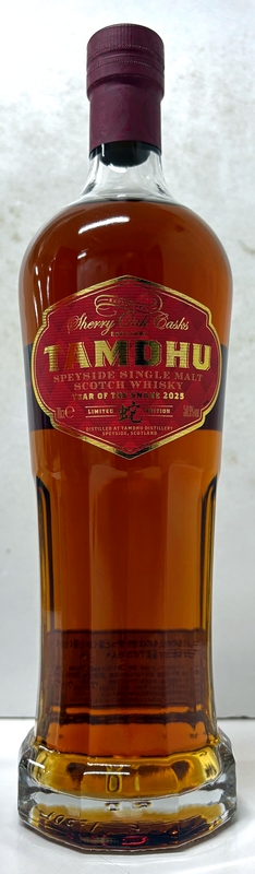 中国の春節(旧正月)を祝うカスクストレングスのノンエイジで、もちろんタムデュー蒸留所の伝統とも言える100%シェリー樽熟成です。2025年の干支であるスネーク(蛇)がそのまま商品名となりました。パッケージも定番商品同様の瓶&箱で、赤を基調としたデザインに大きな蛇のイラストが描かれています。