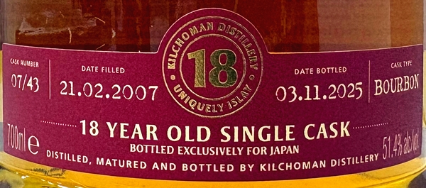 キルホーマン 2007 バーボンバレル 18年 51.4度 700ml