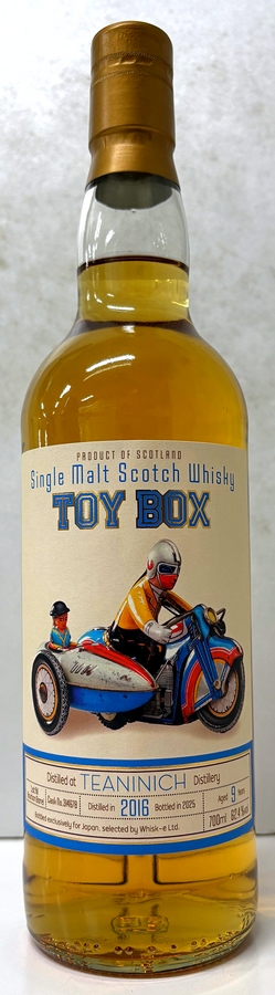 どこか懐かしいレトロな雰囲気漂うおもちゃ(Toy / トイ)をラベルに配した、ウィスク・イーのオリジナルシリーズ「トイボックス」。おもちゃ箱から次々と飛び出す色々なおもちゃのようにドキドキワクワクするようなウイスキーをお届けしてまいります。